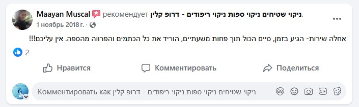 אנחנו מאמינים שהמלצה מלקוח מרוצה היא ההוכחה הטובה ביותר לאיכות, ולכן משקיעים בכל פרט ופרט בתהליך הניקוי.